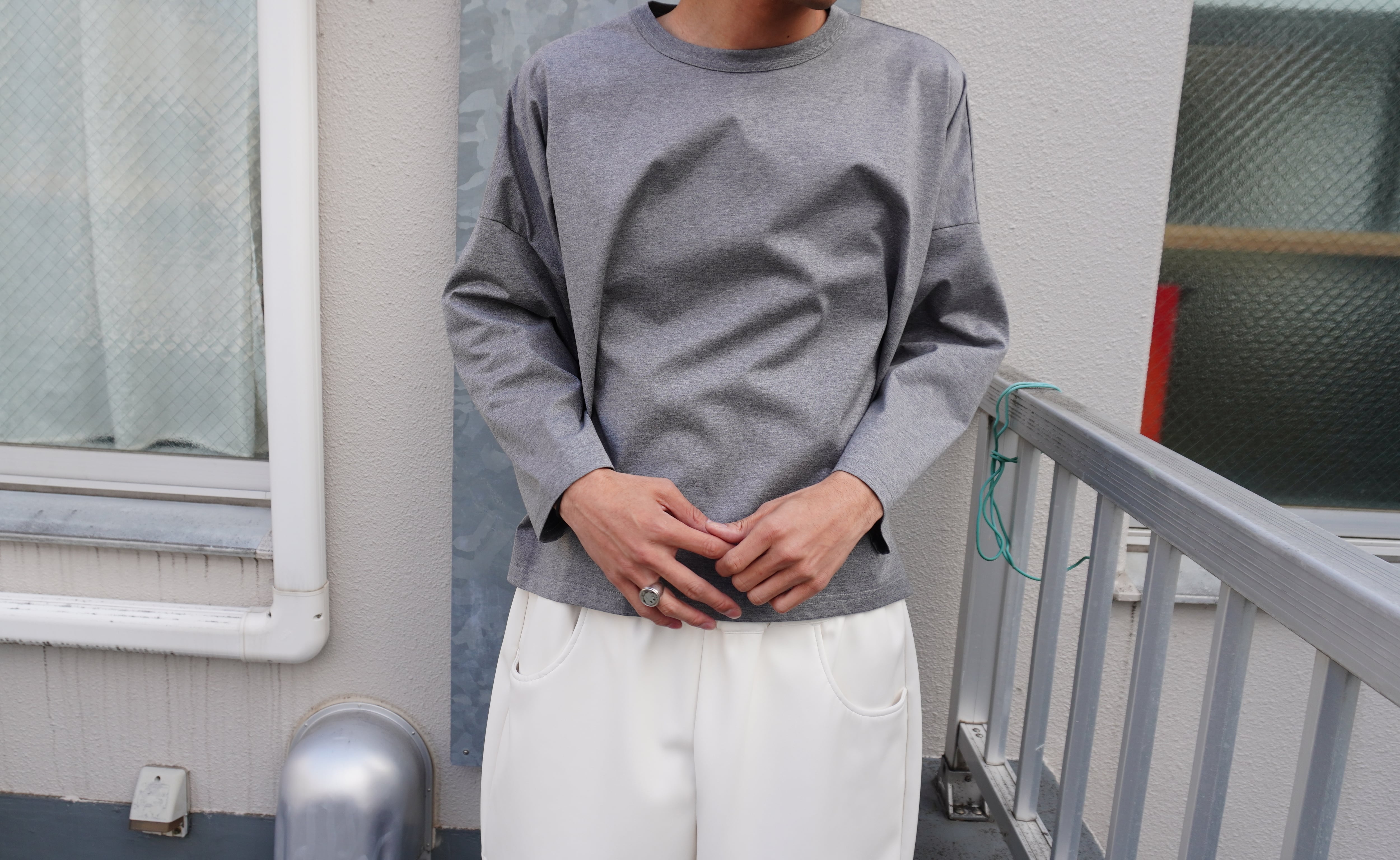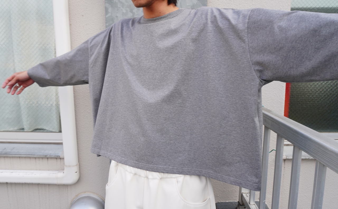 身幅をぐっと引き伸ばしたシルエットのTシャツ。
